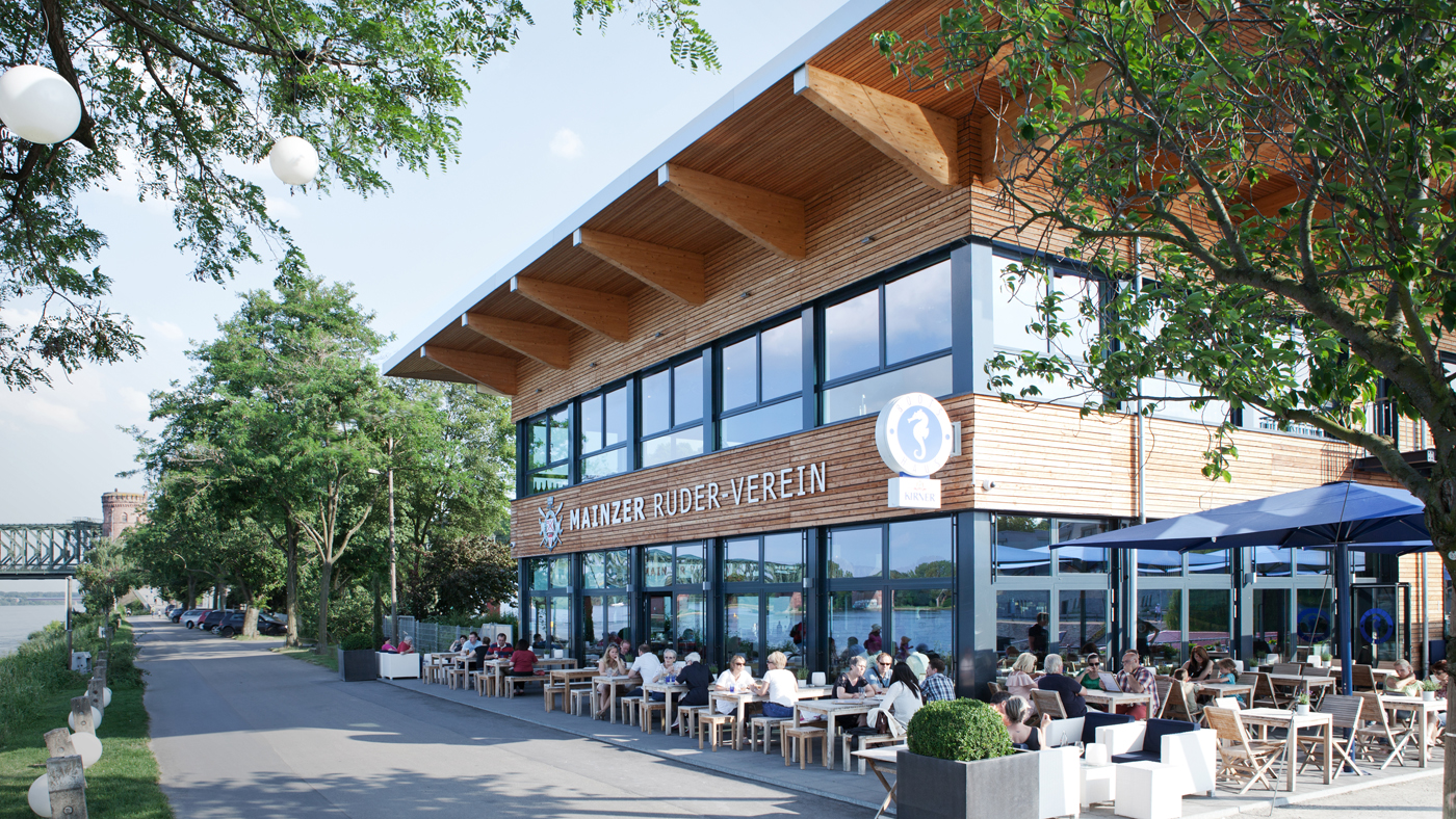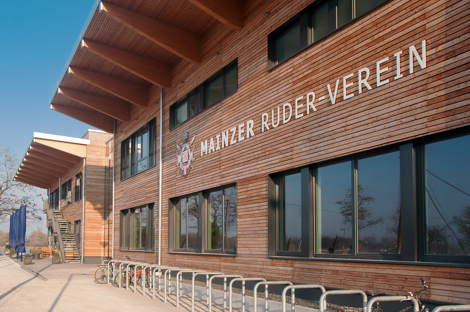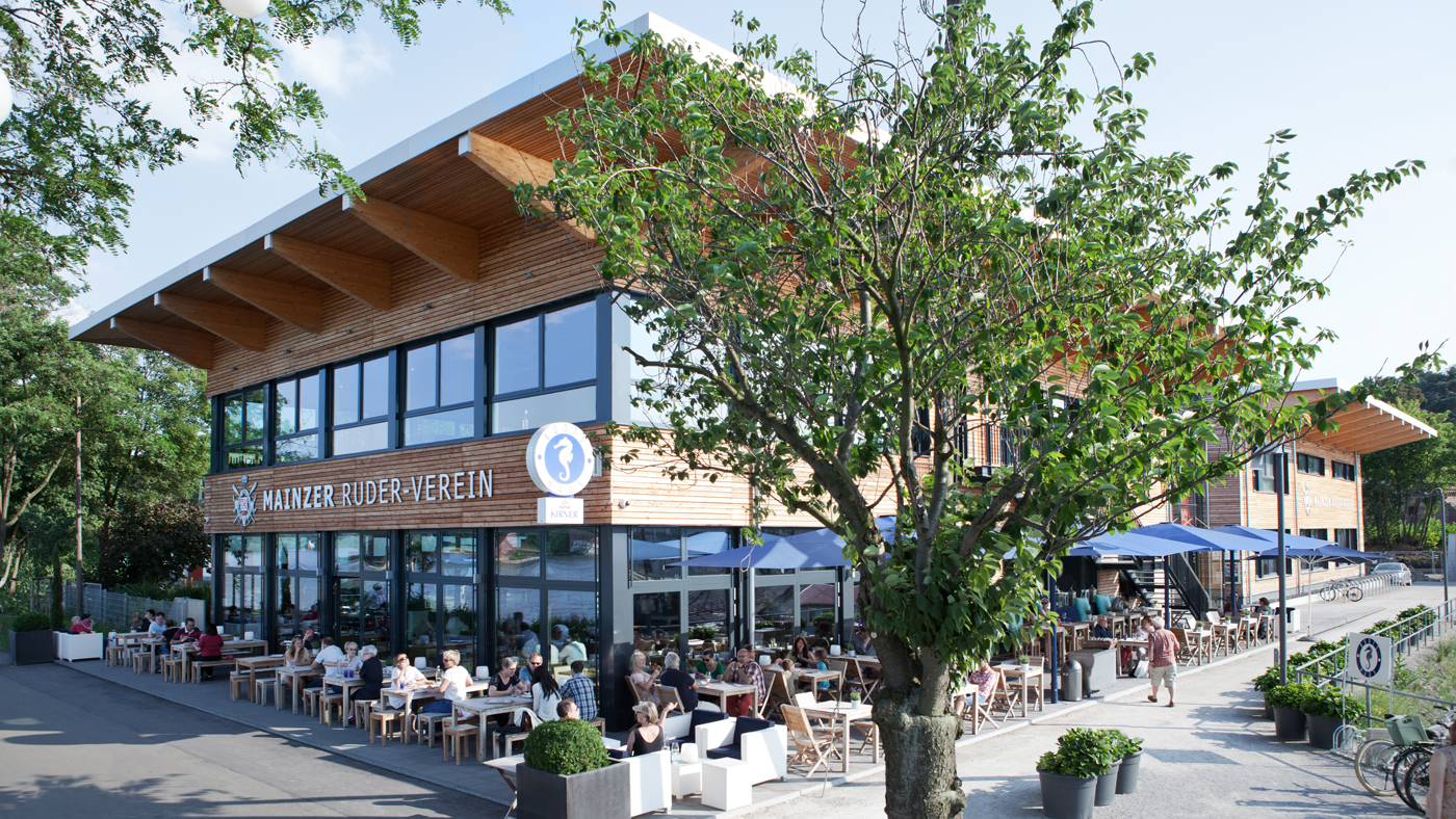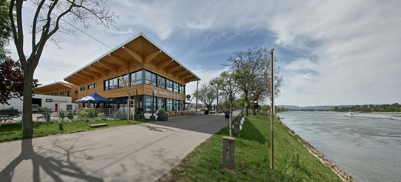 Mainzer Ruderverein Mainzer Ruderverein Auftraggeber Mainzer Ruderverein MASSNAHME Vereinsgebäude mit GastronomieBootshalleNeubau von 4 Tennisplätzen Mainzer Ruderverein Winterhafen, Mainz Bruttorauminhalt: 19.000 m³ Baugenehmigung: Februar 2007 1.Spatenstich: Juni 2009 Richtfest: September 2010 Einweihung: Mai 2011 Baukosten netto: ca. € 5 Mio. Fotos: (1-4) Timm Wagenknecht; Fotos: (5-12) Horst Goebel