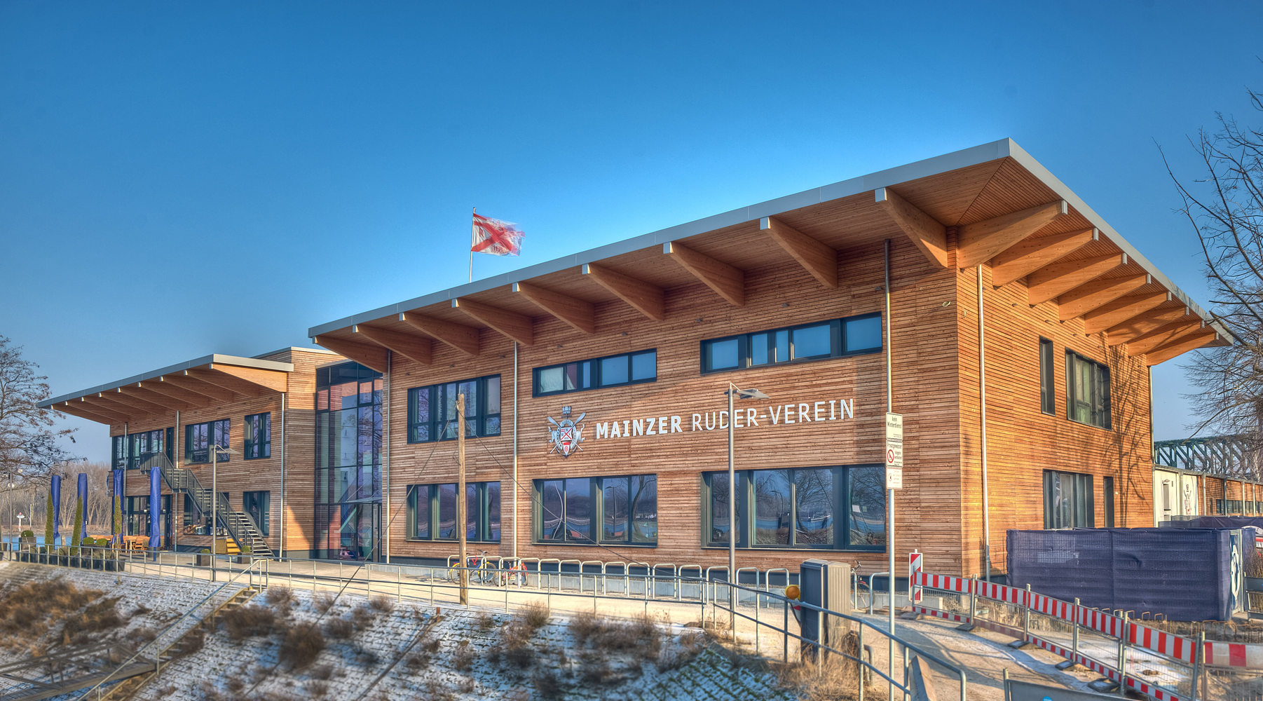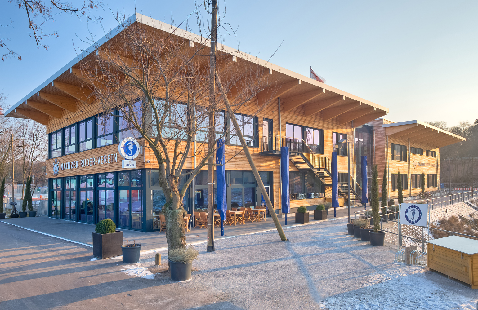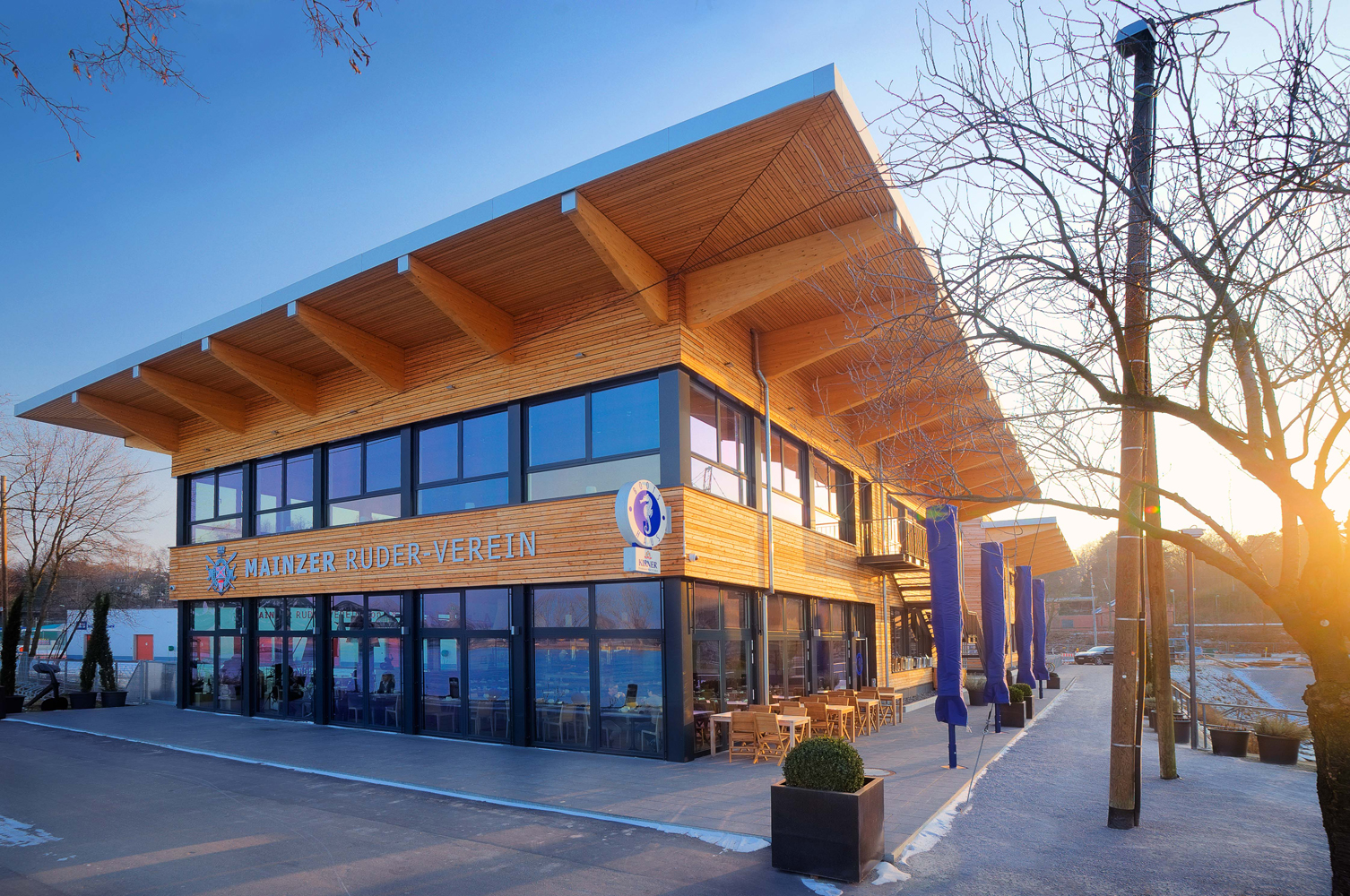 Mainzer Ruderverein Mainzer Ruderverein Auftraggeber Mainzer Ruderverein MASSNAHME Vereinsgebäude mit GastronomieBootshalleNeubau von 4 Tennisplätzen Mainzer Ruderverein Winterhafen, Mainz Bruttorauminhalt: 19.000 m³ Baugenehmigung: Februar 2007 1.Spatenstich: Juni 2009 Richtfest: September 2010 Einweihung: Mai 2011 Baukosten netto: ca. € 5 Mio. Fotos: (1-4) Timm Wagenknecht; Fotos: (5-12) Horst Goebel
